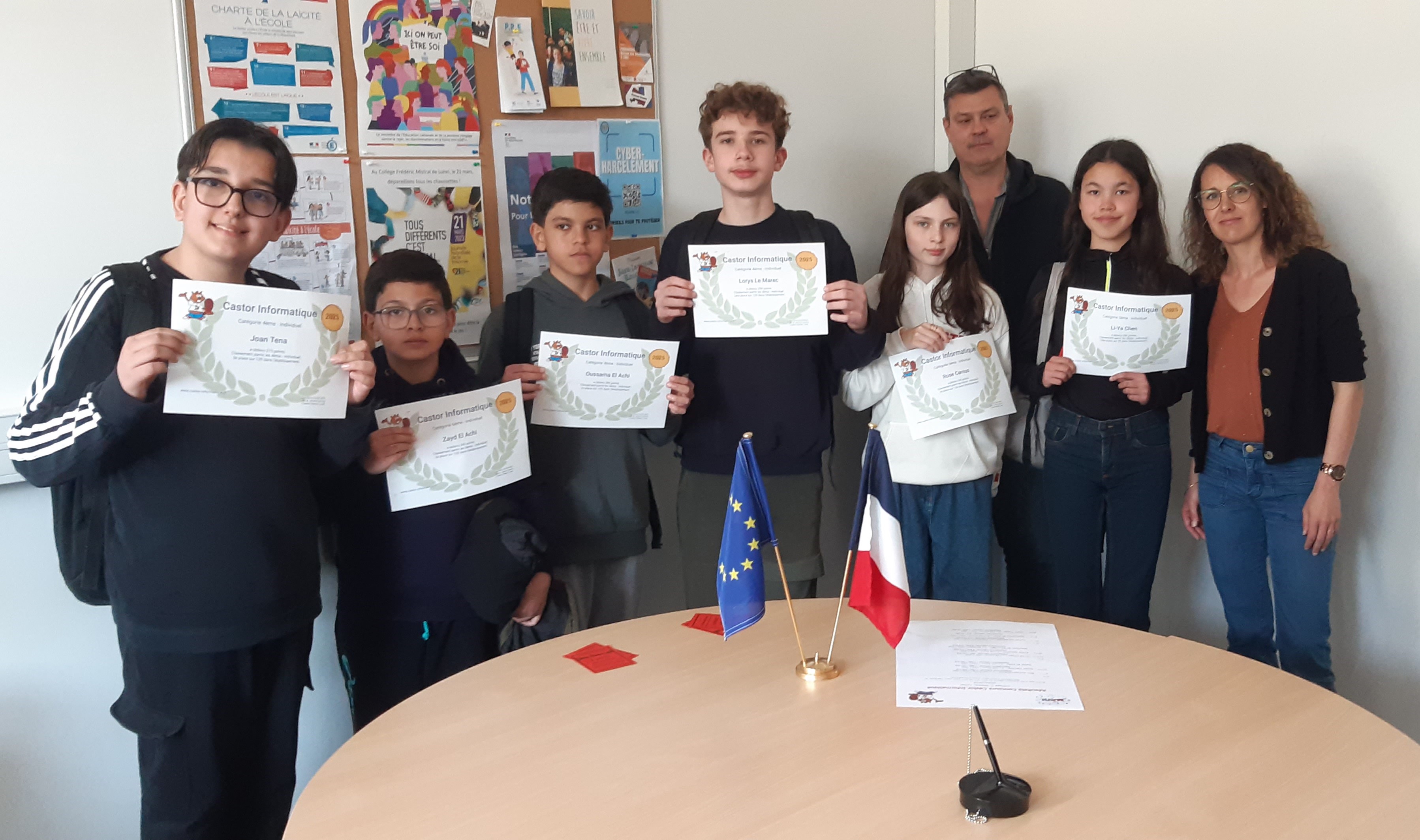 Cette semaine également, les élèves des classes de 6è, 5è et 4è lauréats du concours national Castor Informatique ont reçu leur classement et leur prix, des mains de nos collègues, Mme. Lavoine et M. Leducq. Saluons entre autre le classement de l’élève Li-Ya Chen de 5è arrivée 262è sur 112415 candidats ou encore Lorys Le Marec et Oussama El Achi, de 4è arrivés respectivement 713è et 972è sur 94042 Candidats!